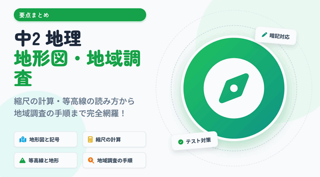 中2 地理:地形図・地域調査 詰める 区切る 🔲 タイトル 暗記 解答 白黒へ 印刷 中2 地理:地形図・地域調査 中学2年 社会 2025年度版 1. 地形図と方位 🗺️ 地形図の定義 定義:地域の地形や土地の利用のしかたを、定められた決まりにしたがって描いた地図... -