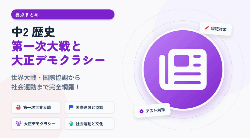 中2 歴史:第一次大戦と大正デモクラシー 詰める 区切る 🔲 タイトル 暗記 解答 白黒へ 印刷 中2 歴史:第一次大戦と大正デモクラシー 第一次世界大戦と社会の変化 1. 第一次世界大戦とロシア革命 🌍 第一次世界大戦 (1914-1918) 対立構造 三国同盟 三国協... -