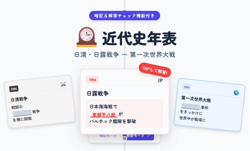🕰️ 近代史年表(日清・日露・WW1) 暗記 解答 © 歴史学習アプリ -