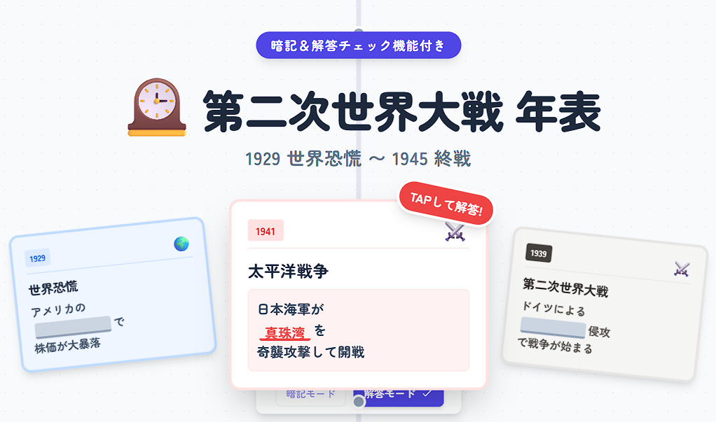 🕰️ 第二次世界大戦 年表 暗記 解答 © 歴史学習アプリ -