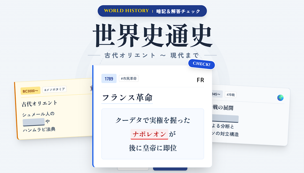 世界史通史 2025 11/21 社会 歴史 2025年11月21日 🌍 世界史通史 暗記モード 解答表示 © 世界史学習 2025 社会 歴史 よかったらシェアしてね! URLをコピーしました! URLをコピーしました! 日本史通史 中3 歴史:戦後の世界と日本 この記事を書いた人 Mr.ガジェット 旧ブログ『Mr.ガジェットの日記』をBloggerで立ち上げ、その後当ブログ『ミスターガジェット』を創設。 Twitterのフォロワーは2500人を突破。 紅白出場経験のあるミリオンシンガー小野正利氏に師事するなど音楽活動にも力をいれている。 関連記事 中3 公民:国際政治・国際経済 2025年11月22日 中3 公民:環境・経済・為替 2025年11月22日 中3 公民:労働と社会保障 2025年11月22日 中3 公民:金融と財政・景気変動 2025年11月22日 中3 公民:生産・企業・独占 2025年11月22日 中3 公民:価格・貨幣・物価 2025年11月22日 中3 公民:家計・消費・流通 2025年11月22日 中3 公民:地方自治 2025年11月22日 コメント コメントする コメントをキャンセルコメント ※ 名前 ※ メール ※ サイト 次回のコメントで使用するためブラウザーに自分の名前、メールアドレス、サイトを保存する。